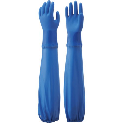 NO695 腕カバー付手袋 腕カバー付耐油ビニローブ ブルー