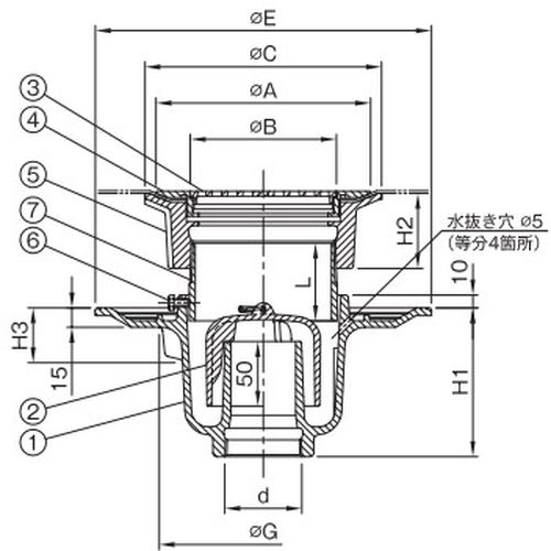 T5BF-DSH シート露出二重防水層用 床排水トラップ