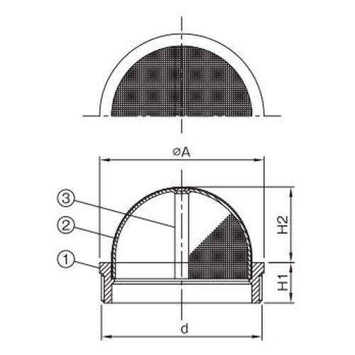 IDNS-HS 半球型防虫網[外ねじ用](通気口金具)