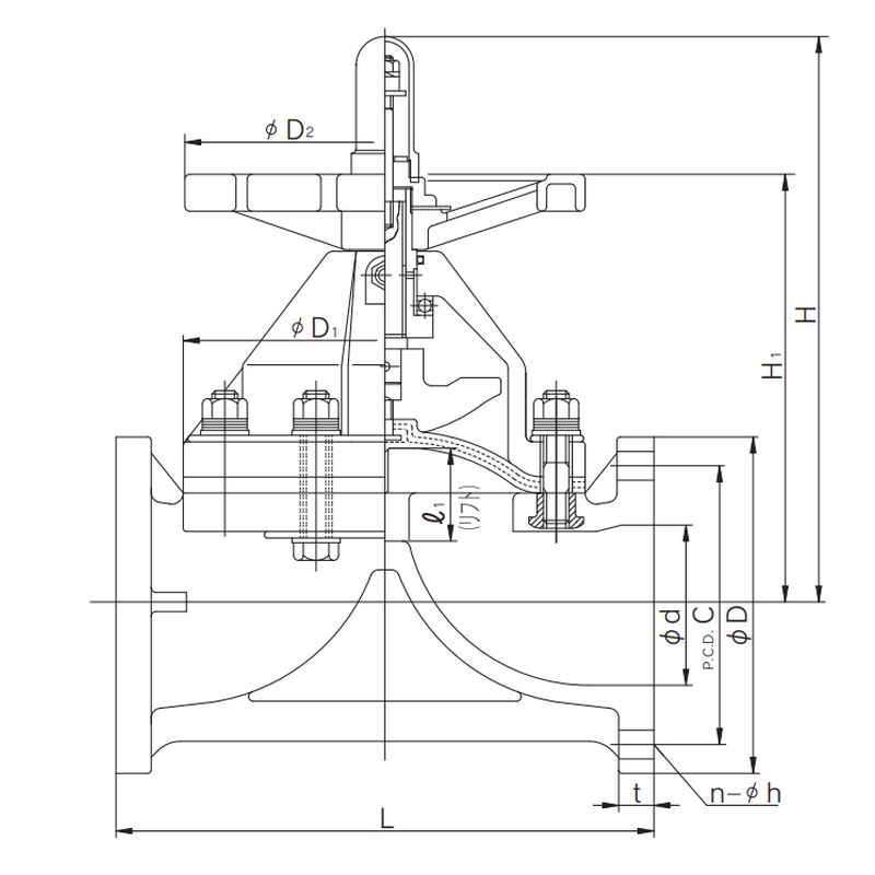 V72MHUTF1 ダイヤフラムバルブ72型 (フランジ形・U-PVC・JIS10K)