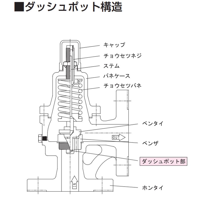 弁体部はダッシュポット構造で、脈動圧、変動圧による弁体の急激な運動を抑制します。