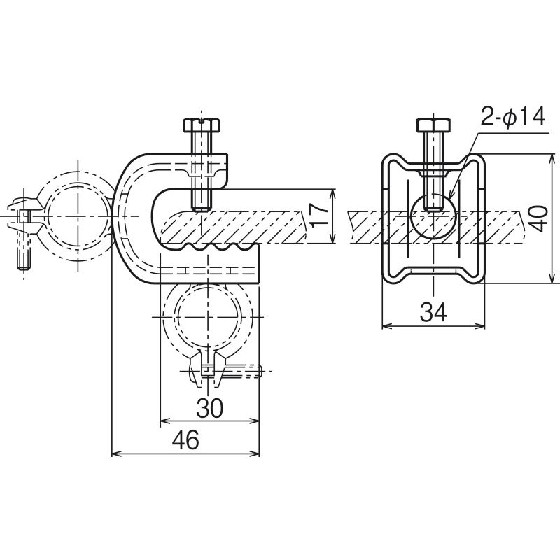 みぞ形鋼フランジ部に取り付ける場合は、パイラック用補強金具PHRC□を併用してください。落下の恐れがあります。