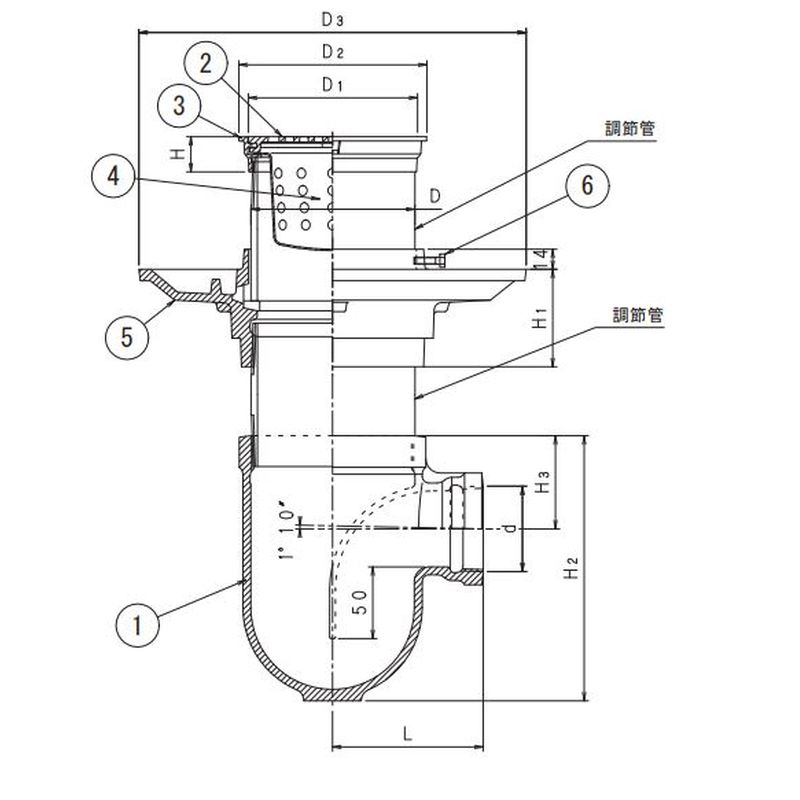 T16BKS P型床排水トラップ