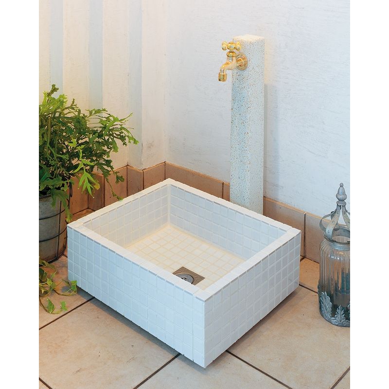 カクダイ 624-970 水栓柱パン(タイル張り・白)