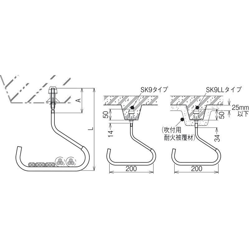 SKL920-55、SKL920-110は、ねじ部を長くしてあり、ケーブル支持位置に合わせてねじ部を切断し、施工することができます。