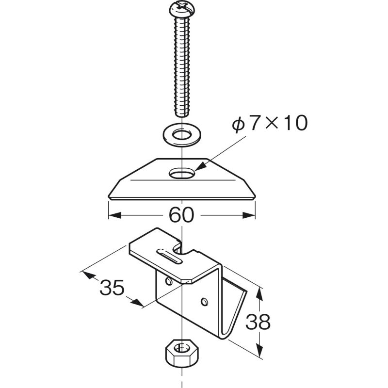 等辺山形鋼75x75の場合は付属のなべM6x50をM6x60に取り替えてご使用ください。