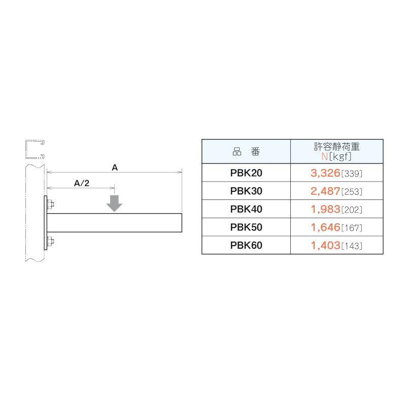 壁面にアンカーボルト等で施工の際は、アンカーボルトの引抜力、低減率等を考慮し、ブラケットへの積載荷重を決めてください。
