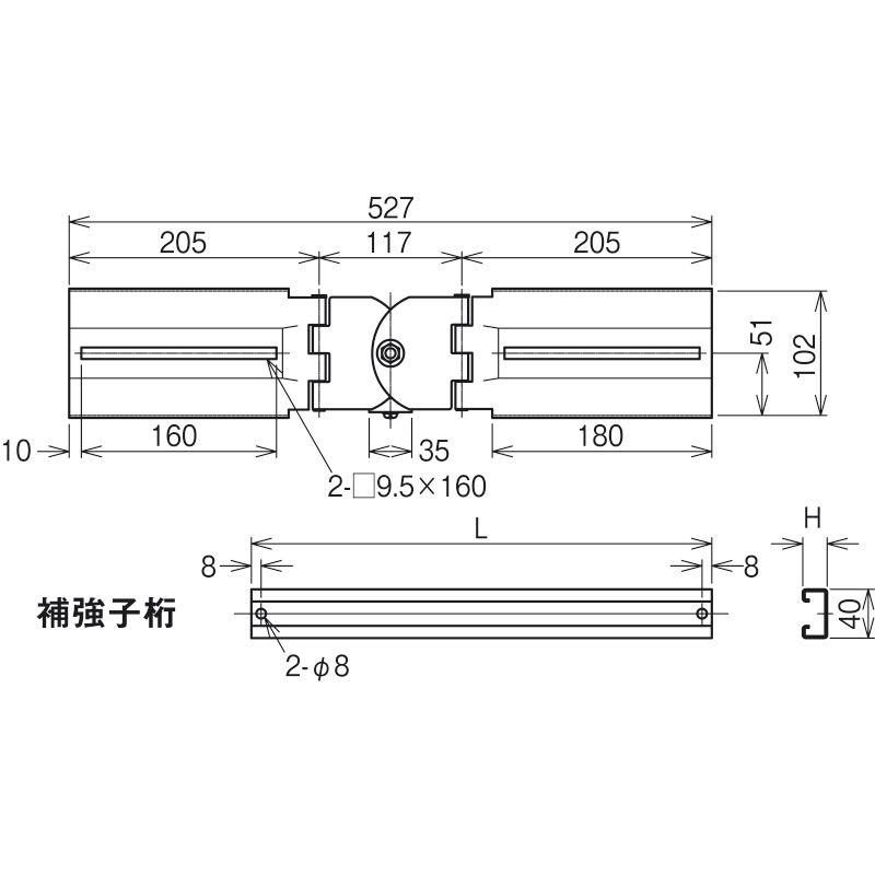 補強子桁が一本付いています。ご使用の際は必要な長さに切断し、穴をあけてお使いください・