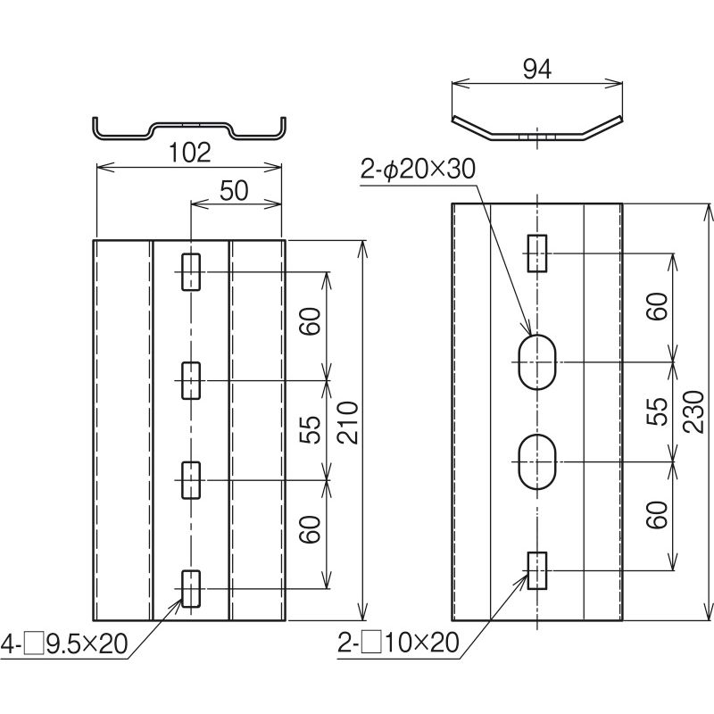 ケーブルラックの接続に用いる補強プレート付継ぎ金具です。