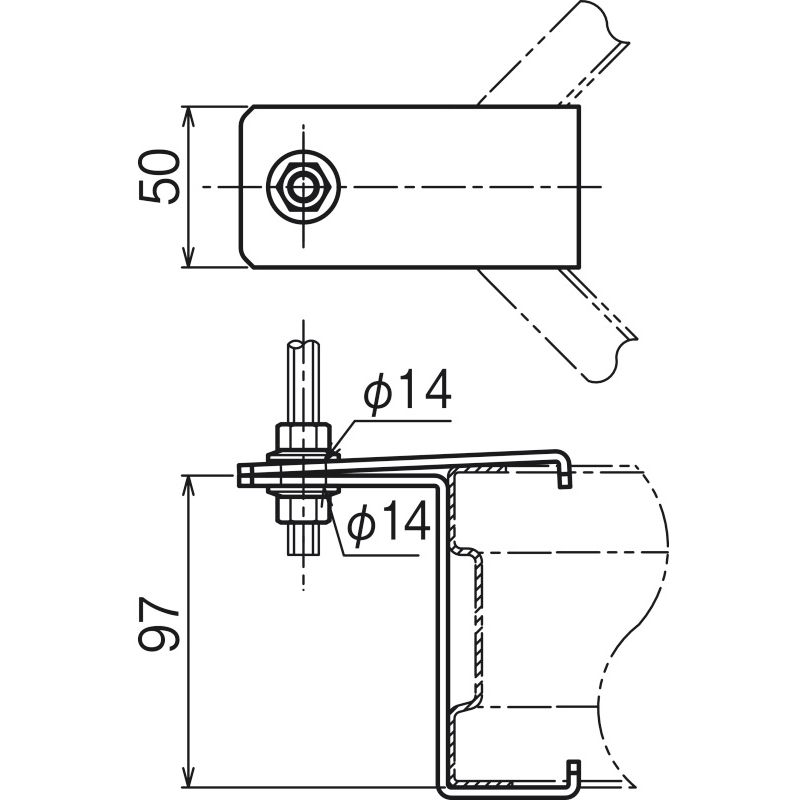 QRLAH1 外直角L形分岐ラック用吊り金具