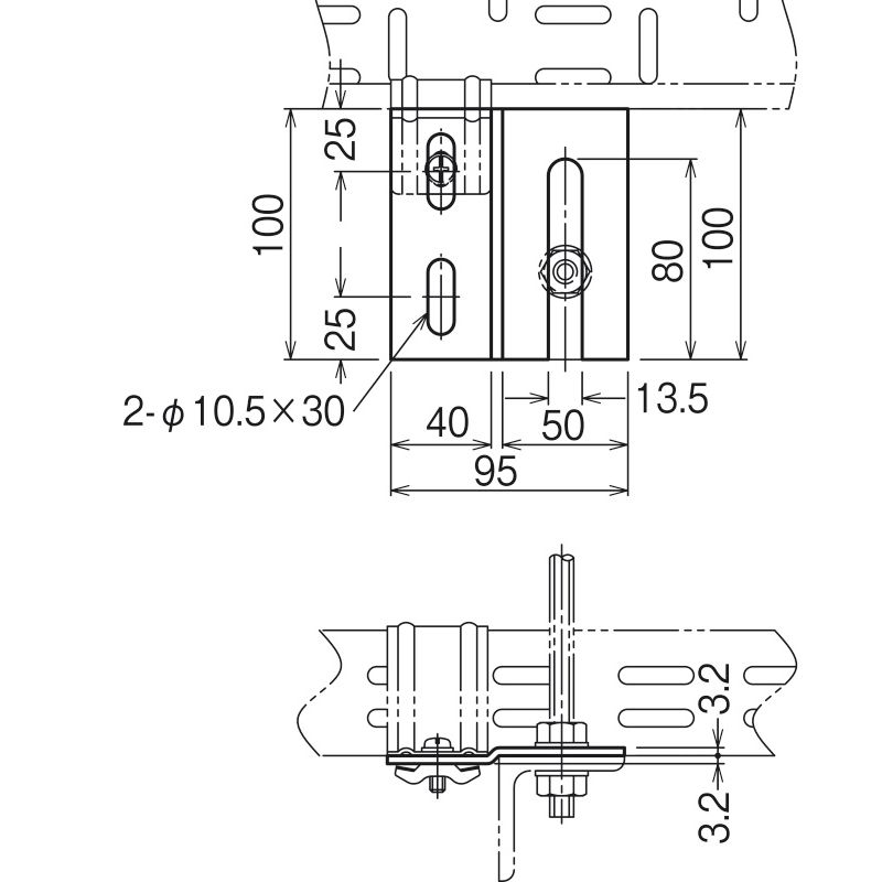 支持材のアングルから金具の位置をずらして親桁を固定する振れ止め金具です。