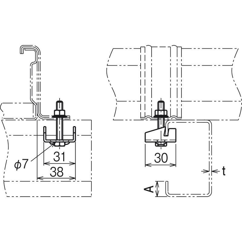 RS7 リップみぞ形鋼用振れ止め金具