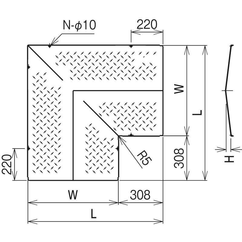 SD-CVLAC□NSY 内・外直角L形分岐屋根形カバー(ノンスリップタイプ)
