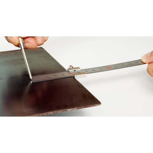 ストッパーを用いるとケガキ作業が簡単正確にできます。