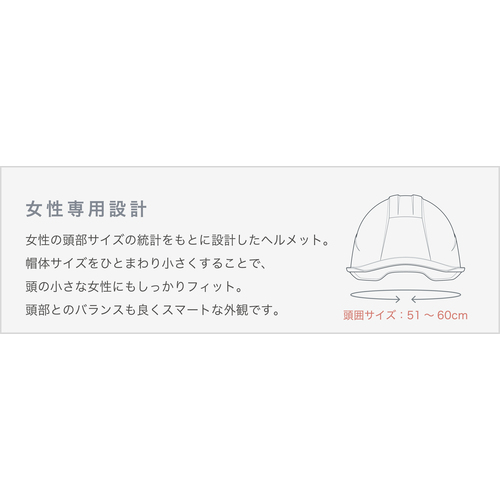 女性の頭部サイズの統計をもとに設計したヘルメットです。