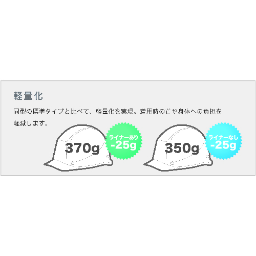 同型の標準タイプと比べて、軽量化を実現し、着用時の首や身体への負担を軽減します。