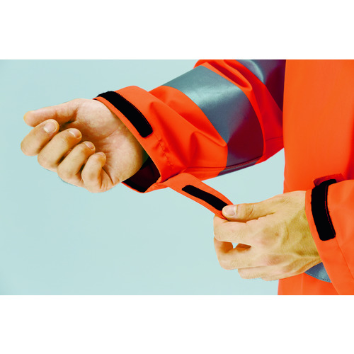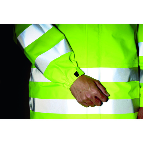 蛍光色に加え、反射材を効果的に配置しあらゆる状況下で明視しやすい雨衣です。
