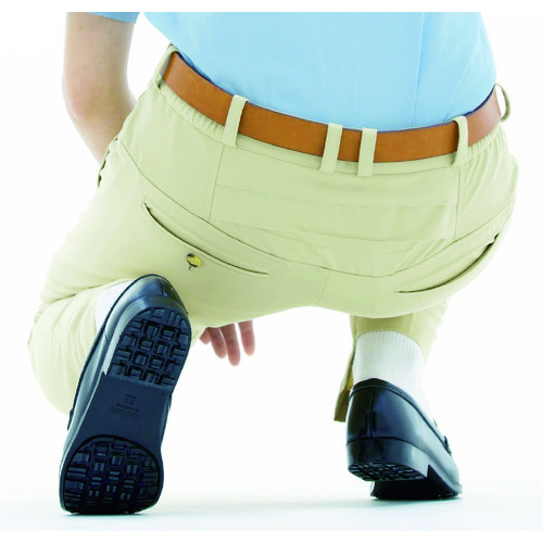 後腰部に伸縮メッシュを施すことで、前後斜めの屈伸の動きをスムーズにしたイージーフレックス仕様です。(特許取得)