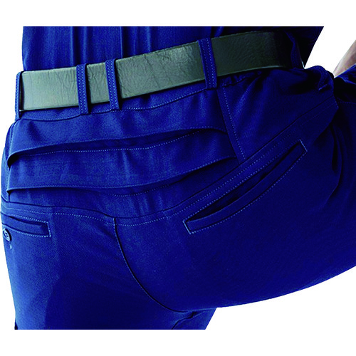 後腰部に伸縮メッシュを施し、前後斜めの屈伸の動きをスムーズにしたイージーフレックス仕様です。(特許取得)