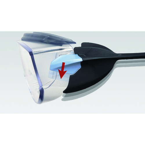 テンプルの角度が3段階に調節できるので、私物メガネとの干渉を防ぎます。