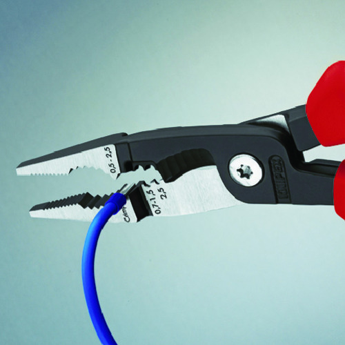 平グリップとパイプグリップおよび、圧着、皮むき、切断など1本で5役のマルチタスクプライヤーです。