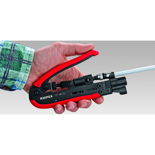 RG 59/6/11ケーブルをF、BNC、RCAコネクターに圧入する際に使用します。