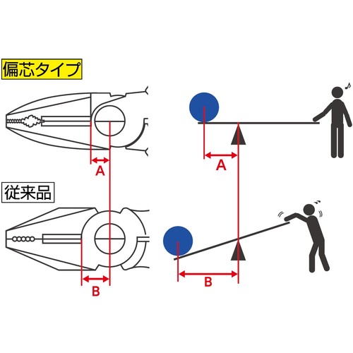偏芯テコで、コンパクトなのに太い線が切れます。