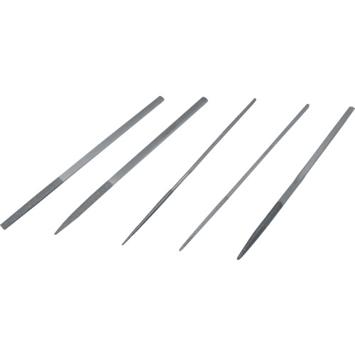 鉄工用5本組ダイヤモンドヤスリの形状5種類(角、丸、三角、半丸、平)をセットにしました。