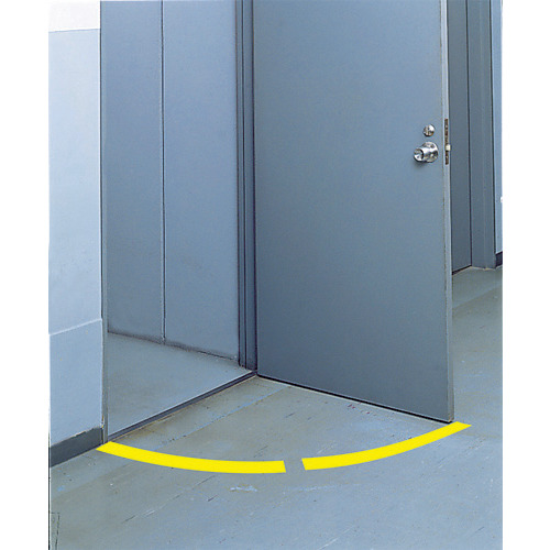 819-61 ドア開閉表示ステッカー アール型 黄・PVCステッカー・50幅
