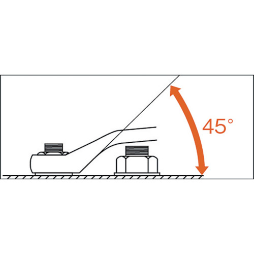 柄部の曲がり角度が45°で全長が短いため、狭い箇所で周辺の障害物を避けて作業ができます。
