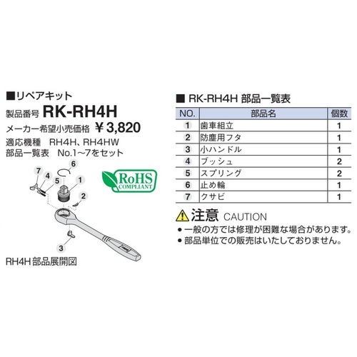 RK-RH4H ラチェットハンドルリペアキット(RH4H、RH4HW、RH4HWL用)