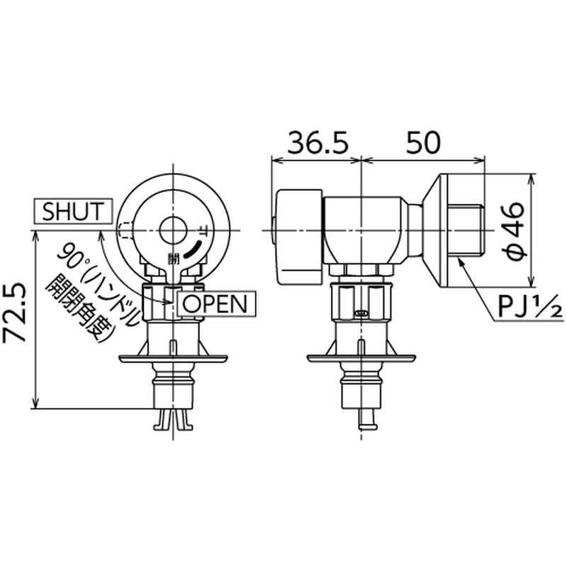 ボールバルブ機能の90°開閉ハンドルで操作が簡単です。