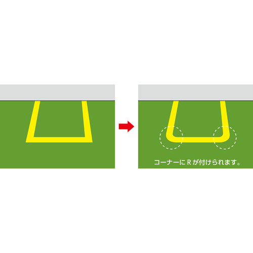 屋内用。ガードテープの直角コーナー箇所に。室内床の区域表示、案内路表示、危険表示等に。
