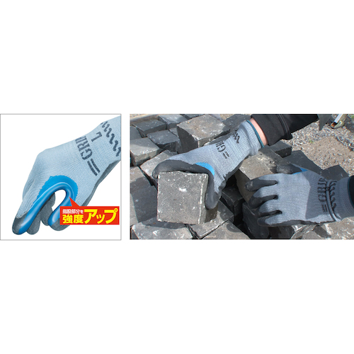 天然ゴムを手のひらにコーティングした背抜き手袋です。