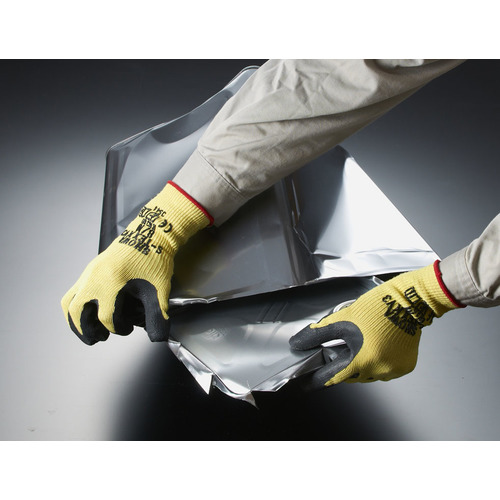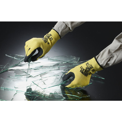 ステンレススティールとアラミド繊維を使用しているため、金属やガラスに対する耐切創性に優れています。