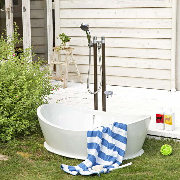 着脱式のシャワー付。ペット・靴などを洗ったり、子供たちのシャワー