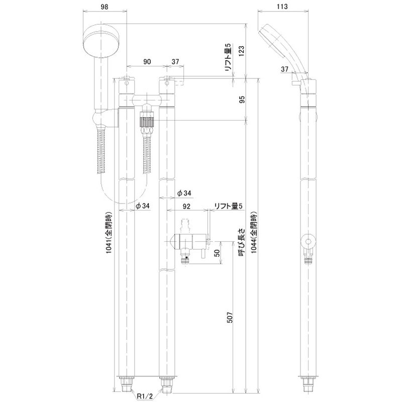 S-34TC 湯水混合デザイン水栓柱(アクアマール・デュエ)
