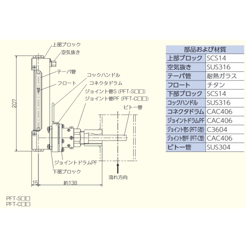PFT-S ピトーセル流量計 指示部固定型 (黄銅製)