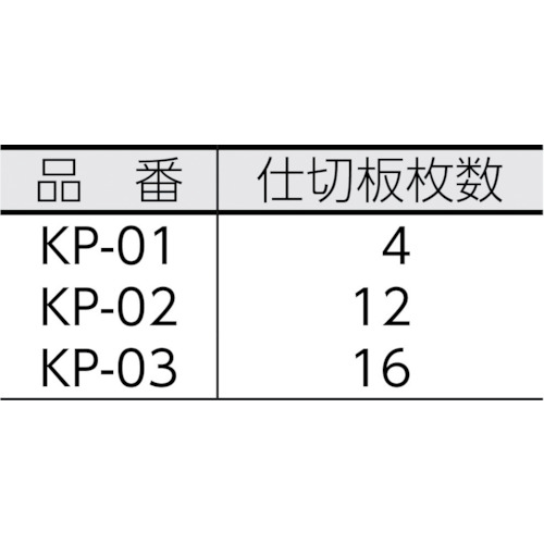 収納物に合わせてKP−01は23mm、kp−02,03は6mmの刻みで、仕切りを調整可能。