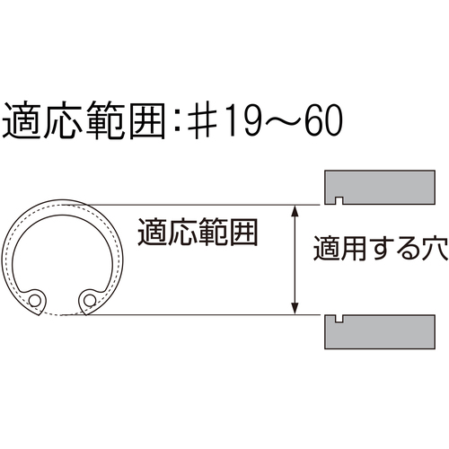 スナップリングの種類と呼びサイズ適応範囲 ベベル形