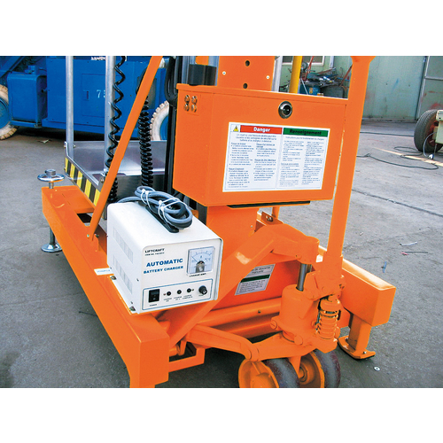 昇降スピードが早く、コンパクトに格納できる電動油圧式高所作業台です。