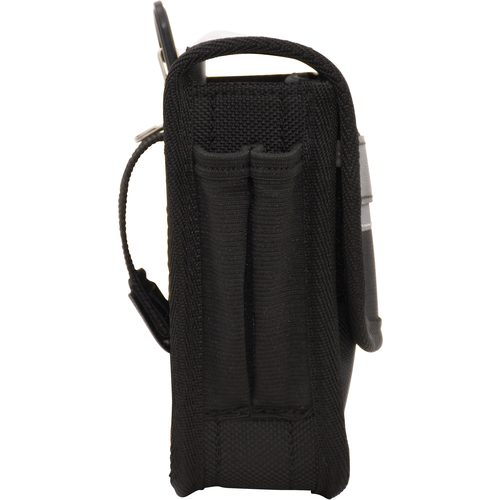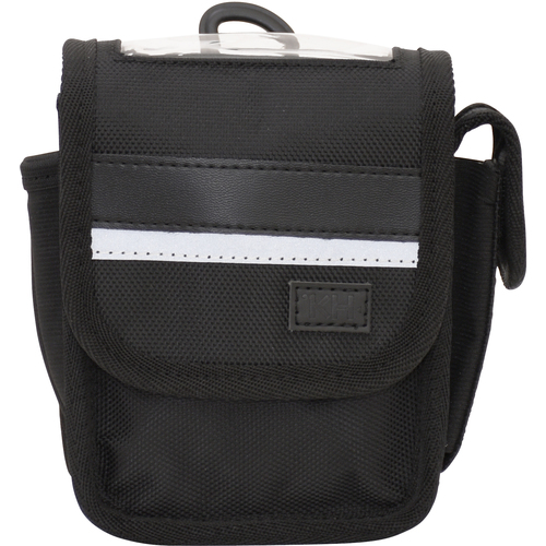 フィーチャーフォンなどが入るゴム式ポケット付きです。