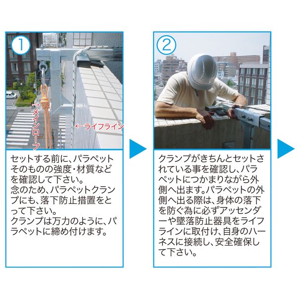 ライフラインはパラペットクランプ本体とは別に、独立したアンカーに取付けてください。