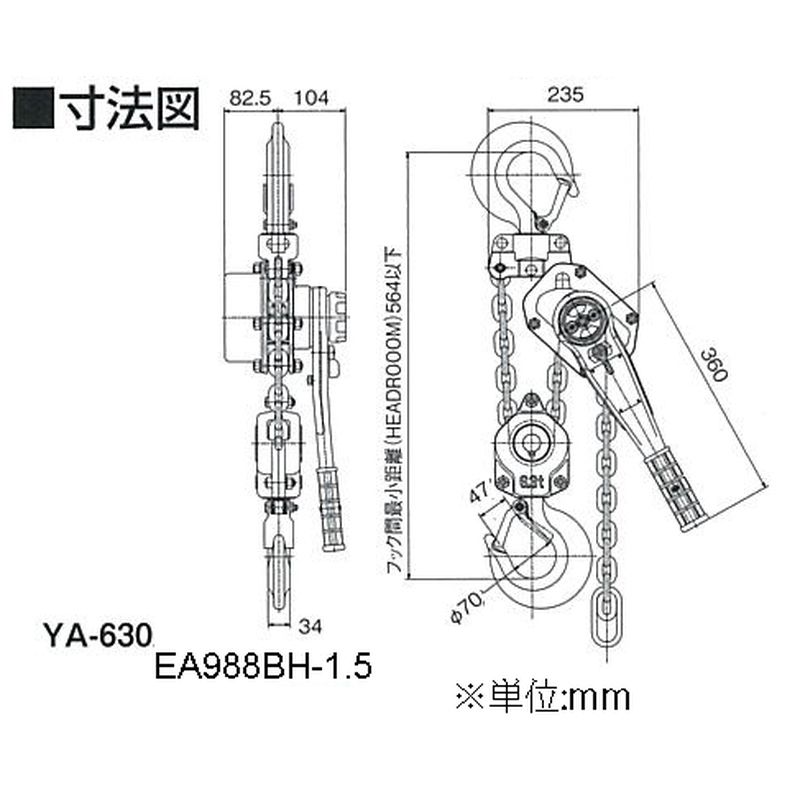 EA988BH-1.5 6.3tonx1.5m レバーホイスト