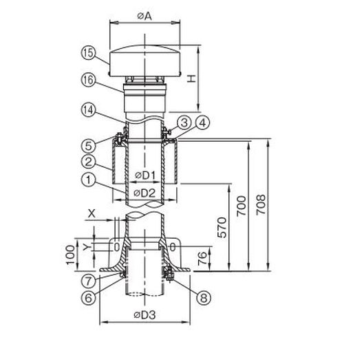 屋上設置用ドルゴ通気弁付です。