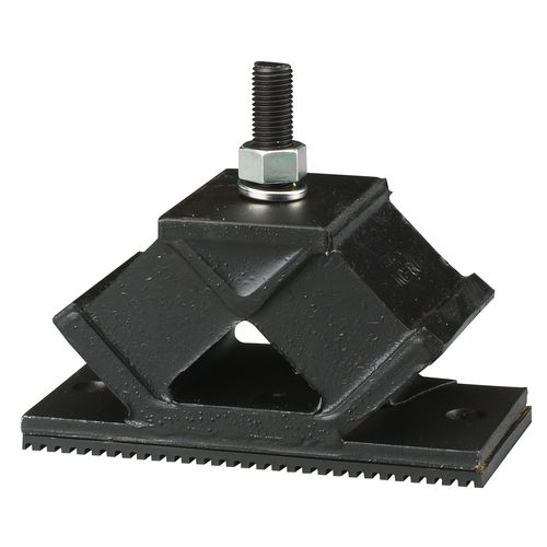 丸形防振ゴムに比べ、横方向の剛性が大きく、安定性がよいので、横方向に加振力のある回転機械などの支持に適しています。