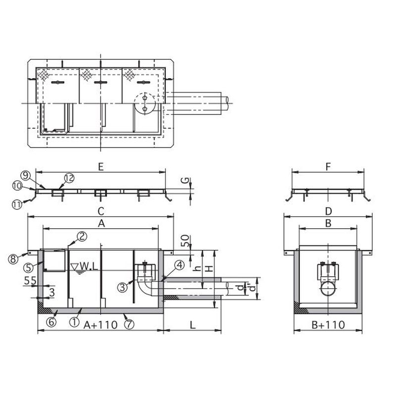 福西鋳物 GTSP-1050 SUS製耐火グリーストラップ SUS製蓋付(135L/min)