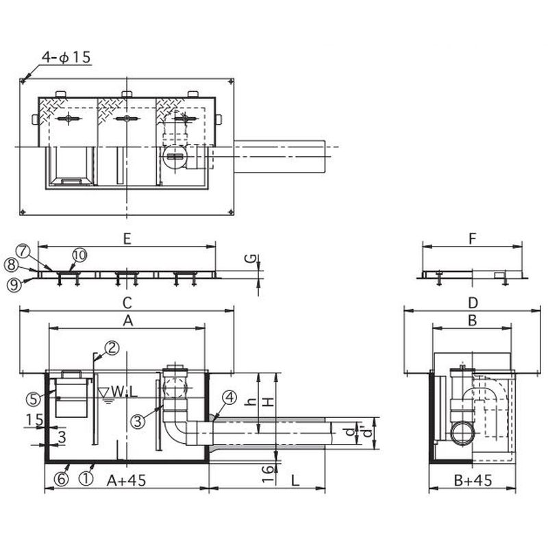 福西鋳物 SF-FK3-100E SUS製ガソリントラップSUS製蓋付 (容量:100L)