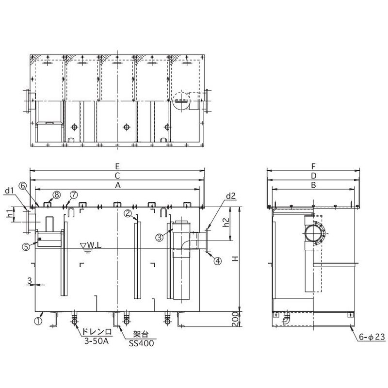 福西鋳物 SF-KW4-1500PD SUS製ヘリポート用ガソリントラップ (容量:1500L)