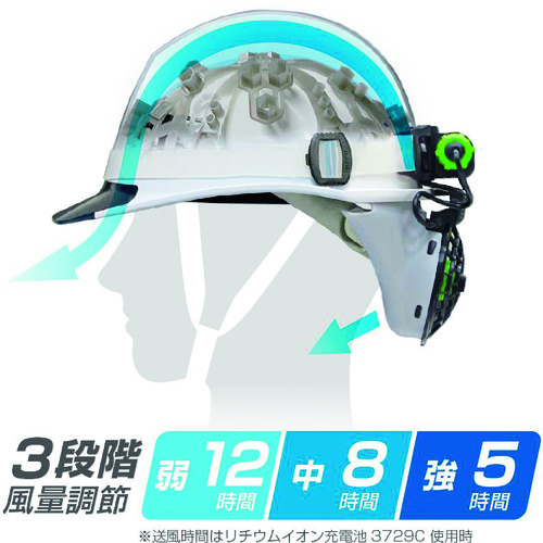 ヘルメット内と首元の2方向送風で効果的に放熱